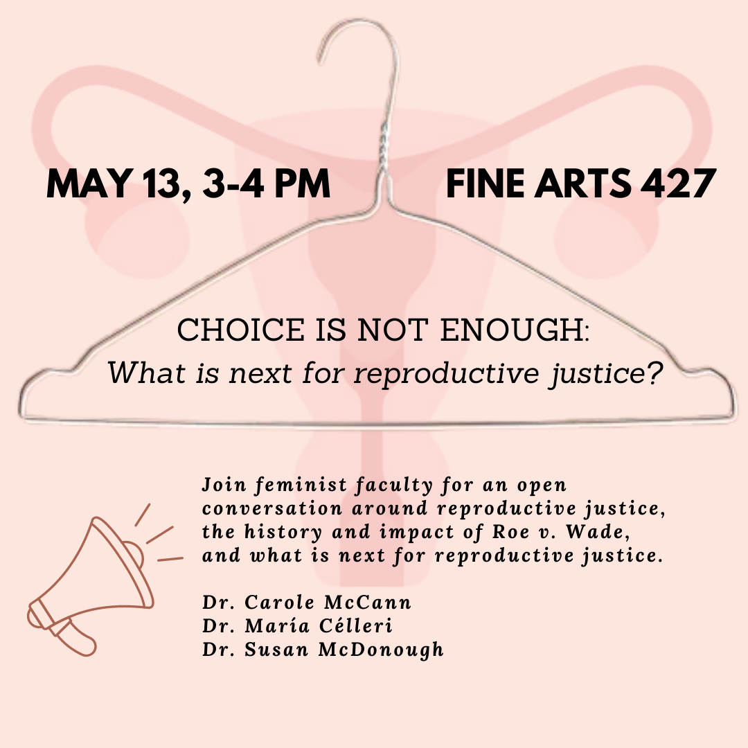 Join feminist faculty for an open conversation around reproductive justice, the history and impact of Roe v. Wade, and what is next for reproductive justice.