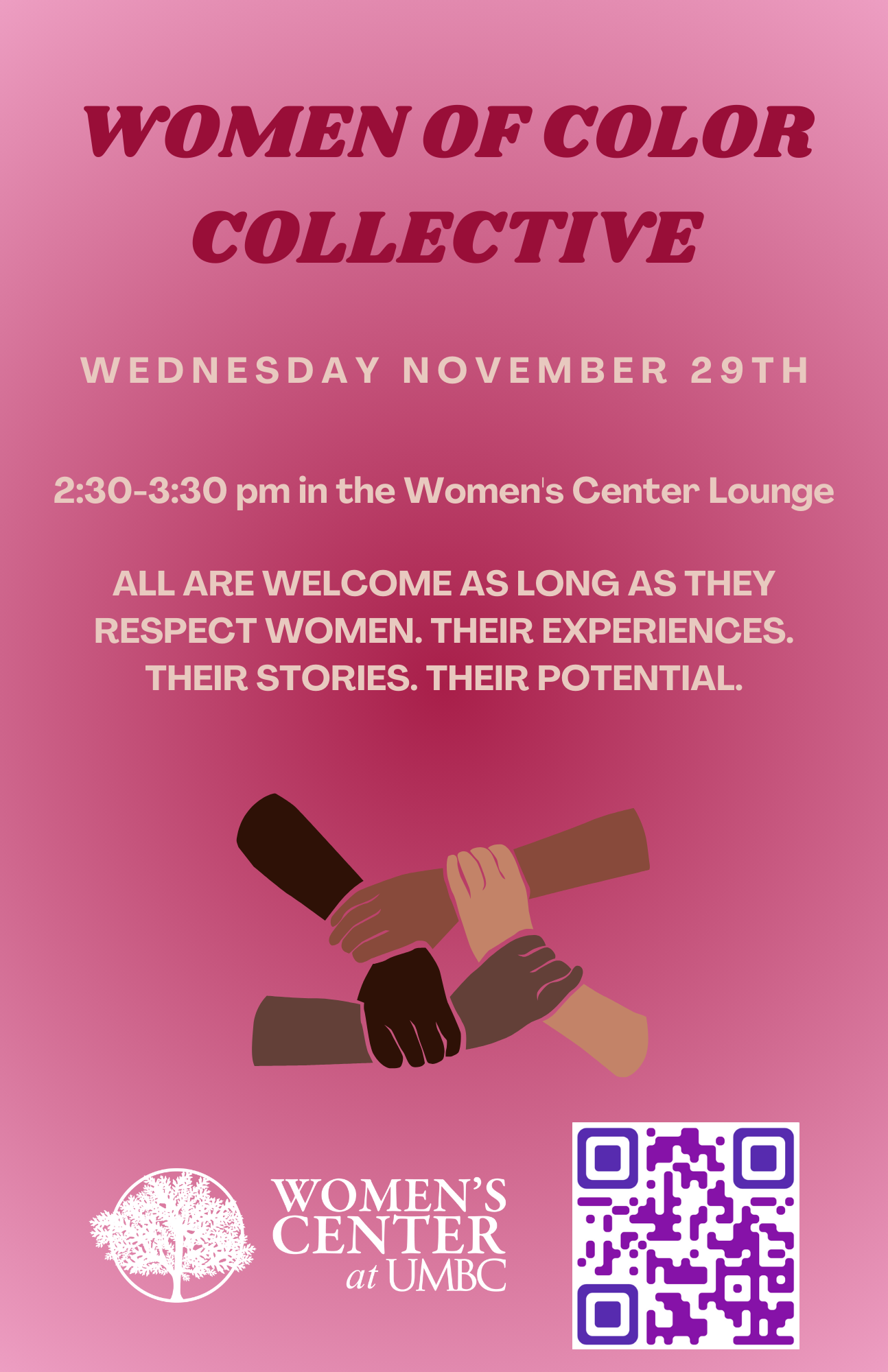 This will be our last meeting of the semester. Please follow our myUMBC and Instagram (@womencenterumbc) to stay up-to-date on our events for the Spring.