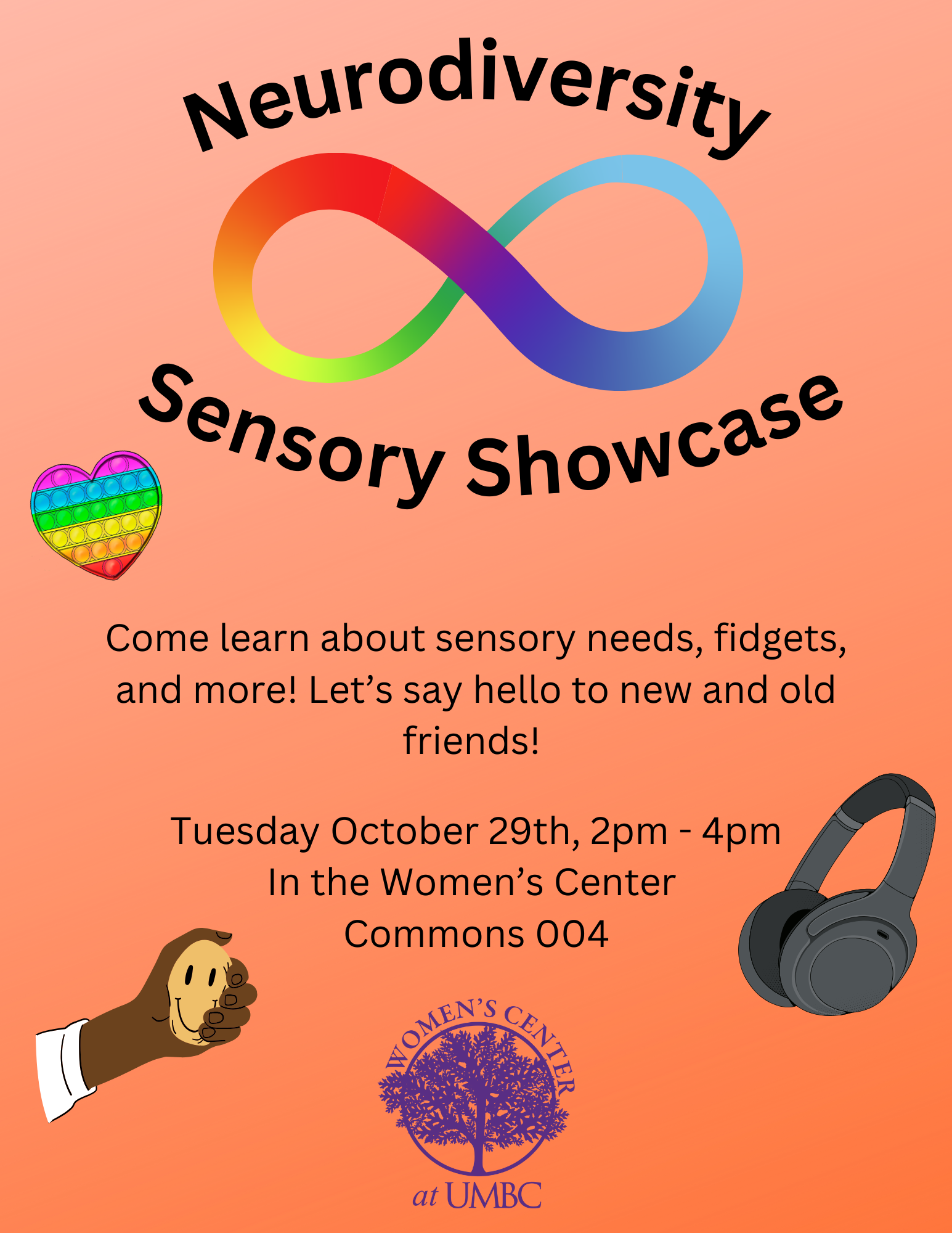 The Women's Center is excited to host a "Sensory Showcase" for UMBC community members who have experiences with neurodiversity. We will discuss sensory needs, fidgets and other helpful tools, and will craft a sensory glitter bottle. We will also have plenty of time to get to know each other! You do not need to have previously attended any Women's Center event to attend this event! We request that students do not use this space for class research or interviews.